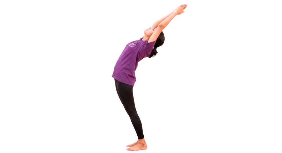 Inhale and raise the arms overhead and backward as 2nd asana.