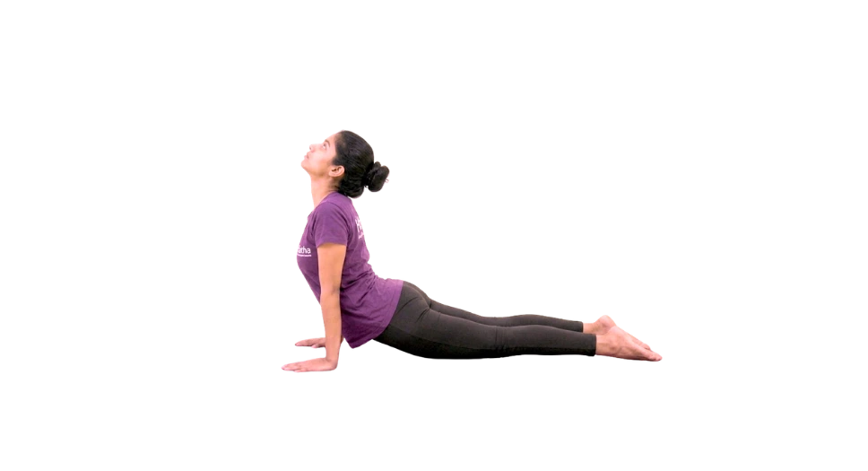 While inhaling slowly raise your head up, chest up and arch your back making your spine taller straightening your arms but keeping your belly on the mat. You may keep the elbow bent for a few days of practice.
